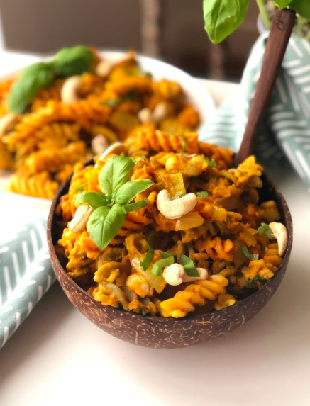 - Novāri 250 g makaronu un tikmēr sagatavo ķirbju ‘siera’ mērci.