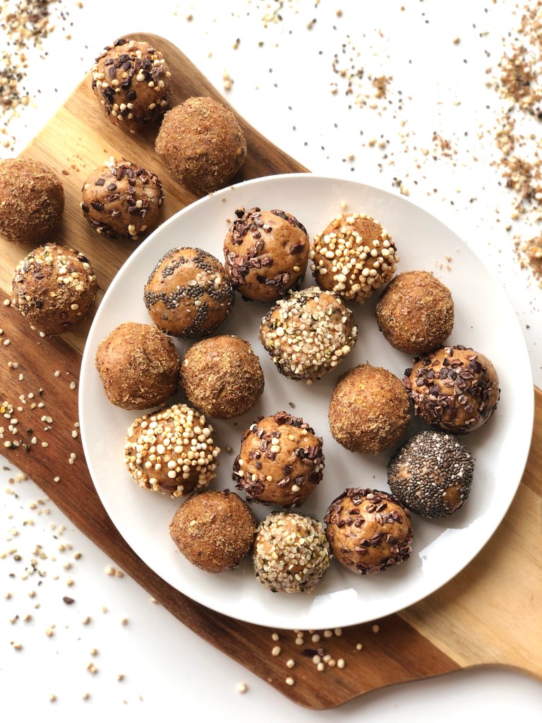 - Pa visas vienkārši! Sajauc visas sastāvdaļas kopā un kārtīgi izmaisi. Ņem mazu gabaliņu no saujauktās masas un rullē bumbiņās. Ja vēlies vari tās apviļāt sēklās pēc izvēles, kakao gabaliņos vai kokosriekstu skaidiņās.