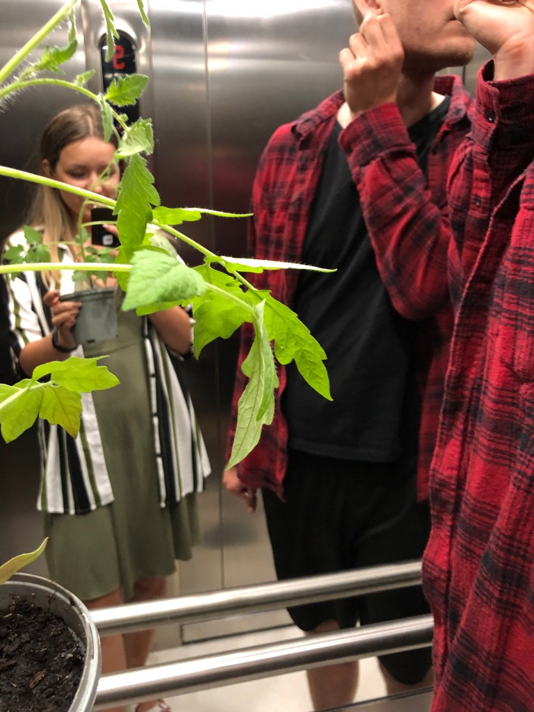 Mūsu dzīvoklī Kopenhāgenā mums beidzot ir balkons, tāpēc arī vēlējos to šovasar izmantot lietderīgi. Iegādājos dažādas tomātu, gurķu un redīsu sēklas un ķēros klāt stādīšanai. Lai tomātiem būtu, kur stiepties, izmantoju pakarināmo stangu pie kā tos atsiet, bet gurķiem ļāvu vīties pa zemi. Papildus mēslojumu neizmantoju, bet lietderīgu liku lietā banānu mizas, kas tiešām palīdz augiem būt raženākiem.