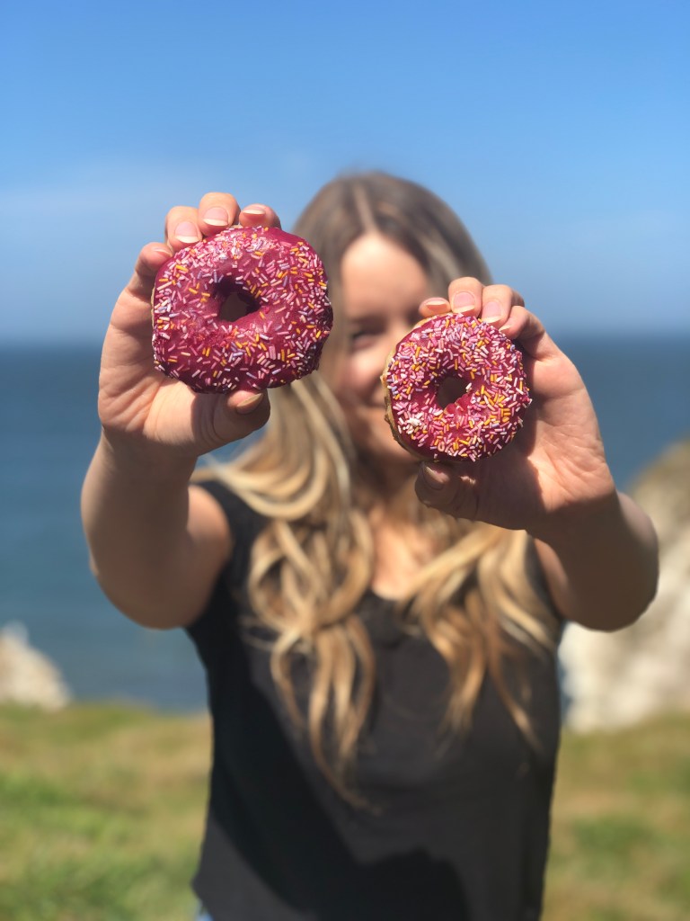 - sagatavo glazūru: samaisi 150 g pūdercukuru, 3 1/2 ēdamk augu pienu, 1 tējk vaniļas ekstraktu un 1 tējk biešu pulveri. Iemērc katru virtuli glazūrā un dekorē ar dekorācijām. Lai garšīgi!