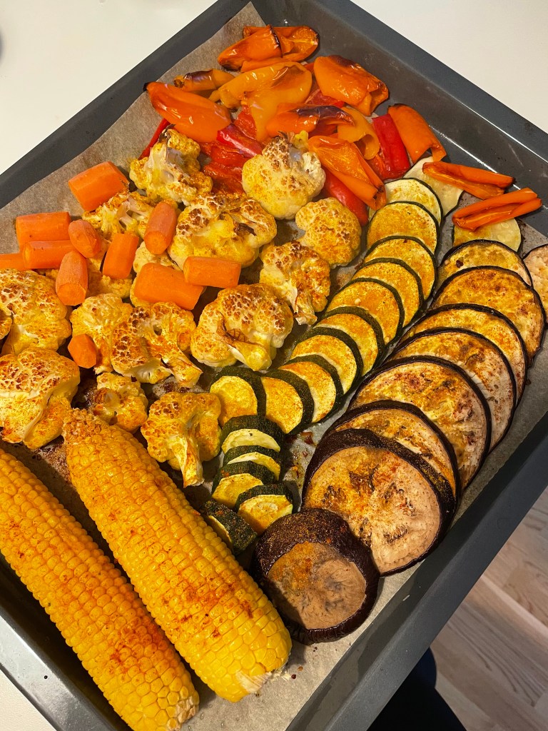 Kā jau iepriekš esmu minējusi, ikdienā cenšamies būt pēc iespējas ekonomiskāki, tāpēc pārsvarā visus dārzeņus pērkam caur Too Good To Go – sanāk ne tikai pašiem izdevīgāk, bet tiek mazināta arī ēdiena izšķiešana un lieka izmešana. Tā kā tas, ko saņemsi paciņā vienmēr ir pārsteigums, nereti gadās, ka maisā ir ļoti daudz dažādi dārzeņi, tāpēc tādās reizēs, lai tos izlietotu pēc iespējas ātrāk, taisām krāsnī ceptus dārzeņus.