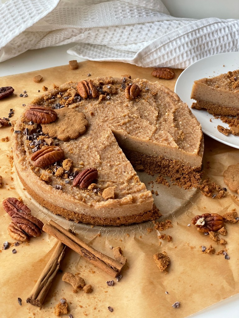 Vēl viena vegāniska “siera” kūka, bet šoreiz Ziemassvētku garšās! Piparkūkas, krēmīgs pildījums un nedaudz kanēlis un muskatrieksts svētku noskaņojumam!