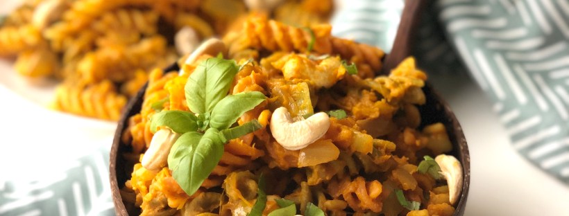Turpiniet lasītKrēmīgā pasta ar ķirbjiem un riekstu sviestu
